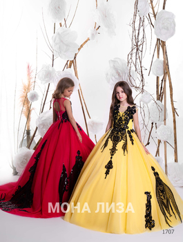 Нарядное платье для девочки. Платье пошито из мягкой евросетки, украшено объёмным узором из блестящей чёрной пайетки. Без шлейфа! В наличии красное!
