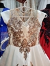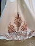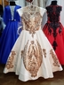 Нарядное платье для девочки. Платье пошито из плотного королевского атласа. Верх платья украшен золотыми аппликациями из пайеток. Застегивается на пуговички и затягивается шнуровкой на потайном корсете. Без шлейфа !!!